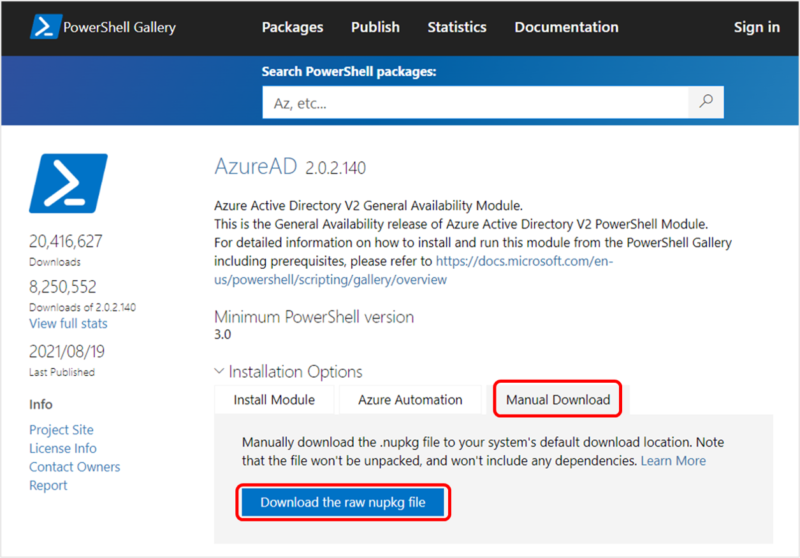 Azure AD PowerShell モジュールの制限環境でのインストール