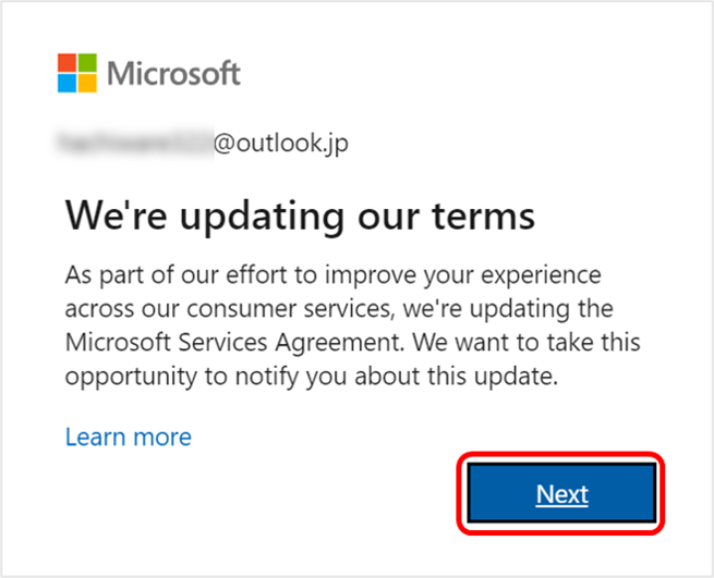 私の場合、既に個人のMicrosoftアカウントでサインインしていたため、以下の画面が表示されました。