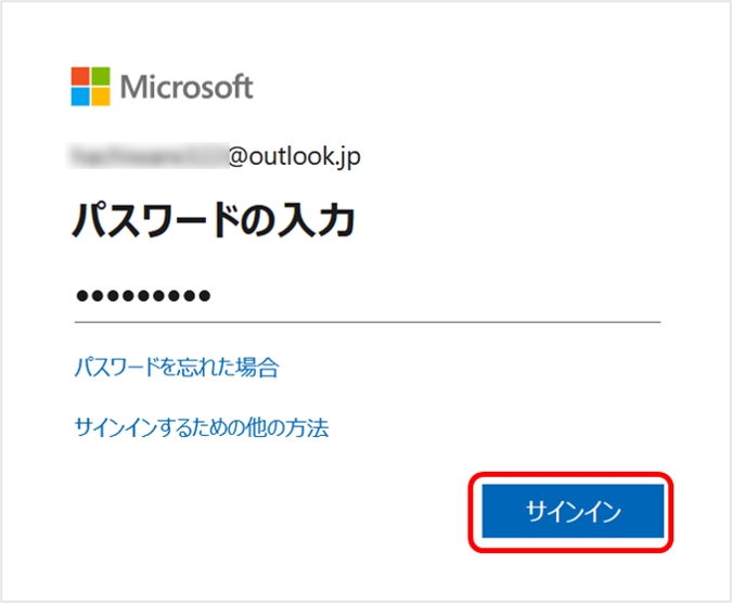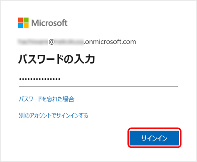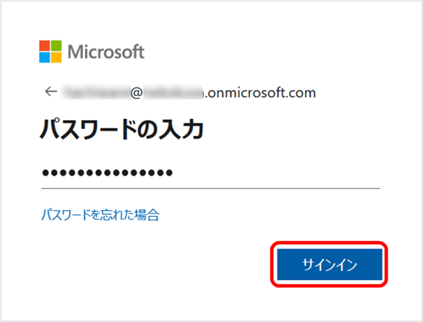 先ほど設定したパスワードを入力し[サインイン]をクリックします。