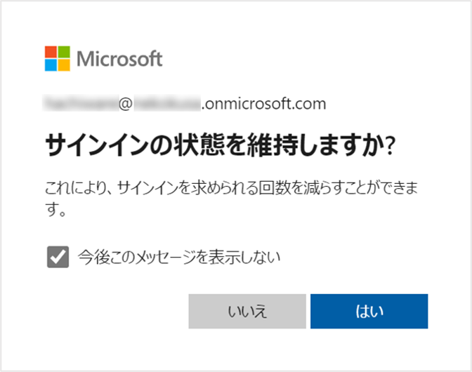 今後認証を省略したい場合は「今後このメッセージを表示しない」にチェックを付けて[はい]をクリックします。