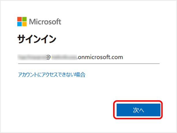 ①に入力するのはMicrosoft365の全体管理者となるユーザー名です。