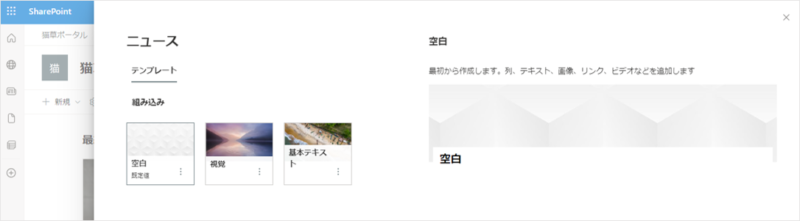 デフォルトのテンプレートは「空白」「視覚」「基本テキスト」の3種類。