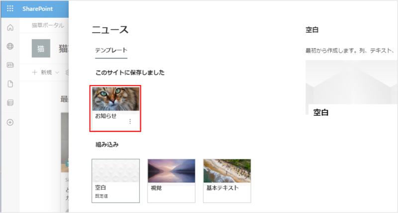 テンプレートはニュースから作成する