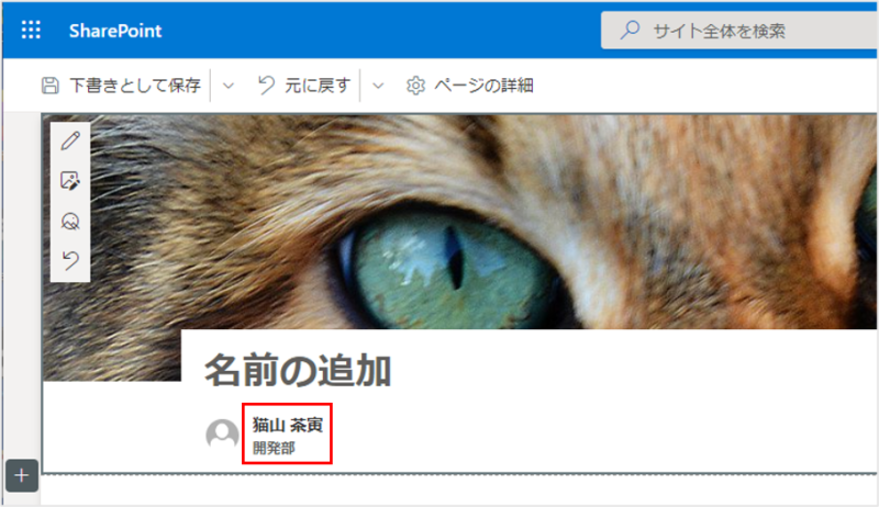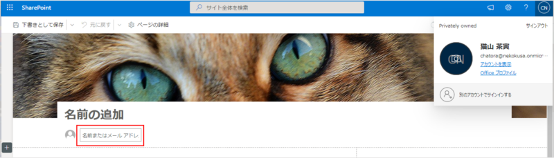 名前と所属が表示されました(当たり前ですが)。
