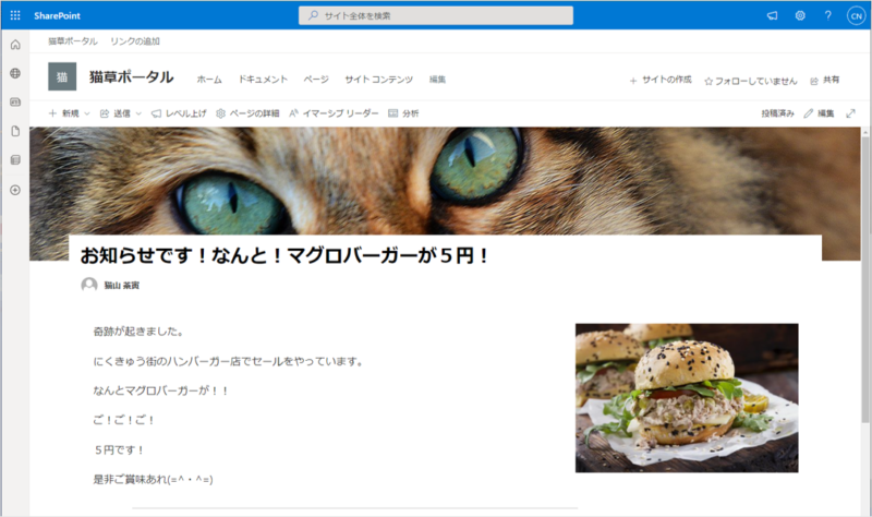 テンプレートを基に作成したニュース記事がこれです。