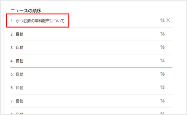 自動となっている部分は従来の公開日順にニュース記事が動的に挿入されます。