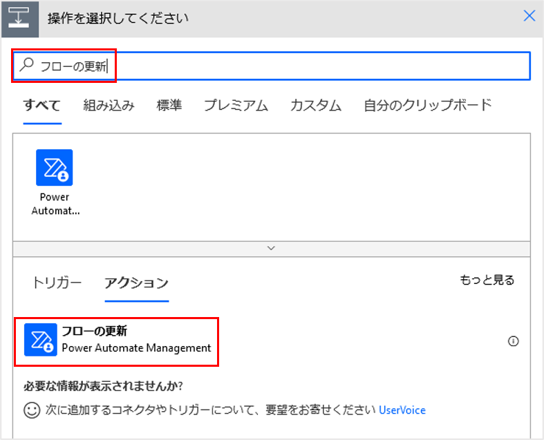「+新しいステップ」をクリックし、「フローの更新」アクションを追加します。