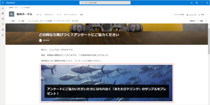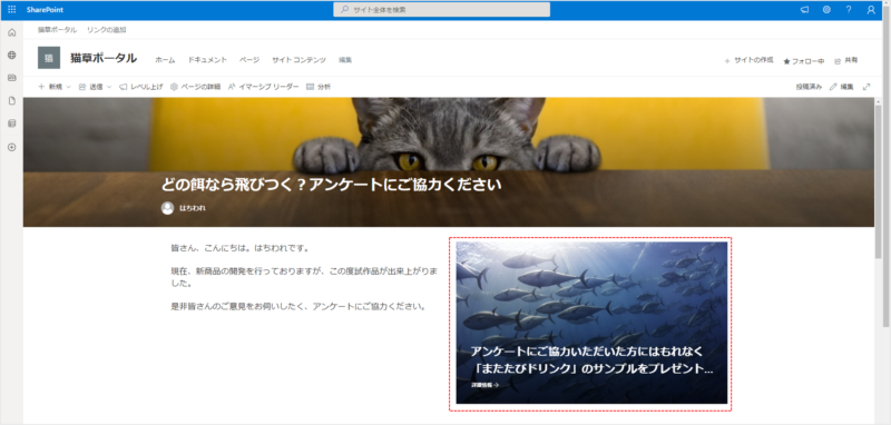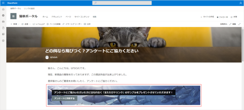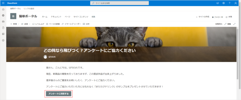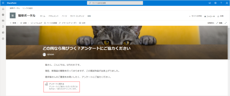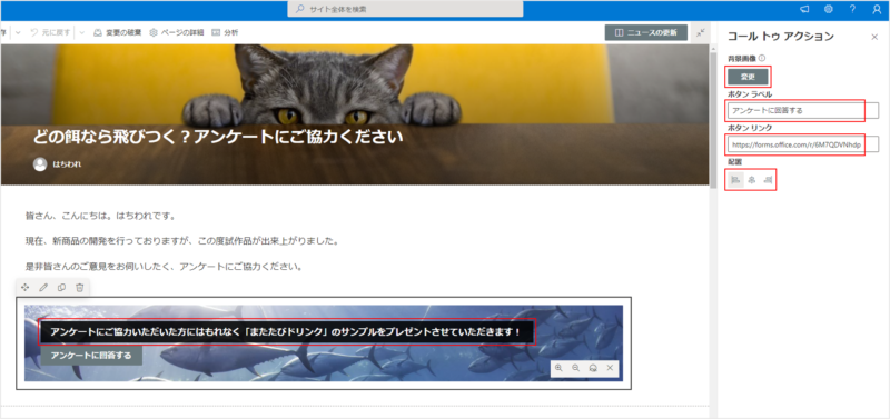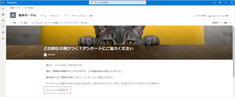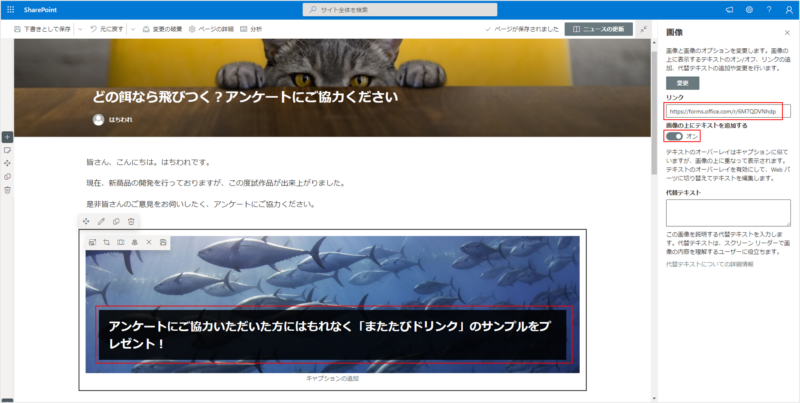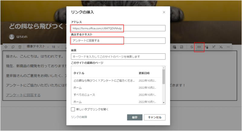 今回はニュース記事にアンケートに回答してもらうためのリンクを貼り付けるというケースを例として挙げてみました。