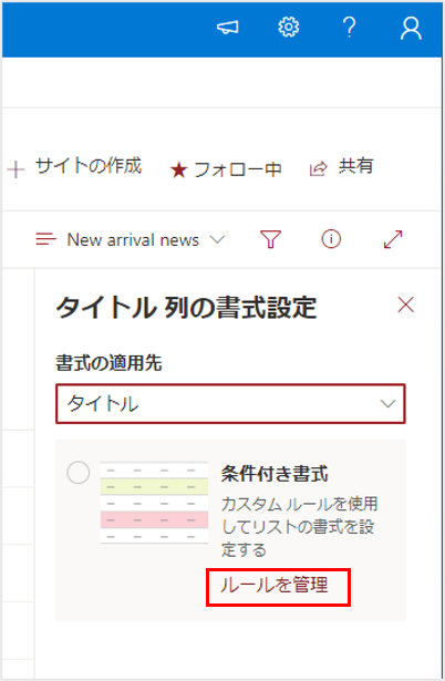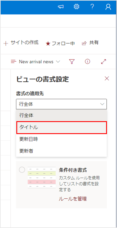 「書式の適用先」より対象の列である「タイトル」を選択します。