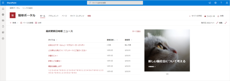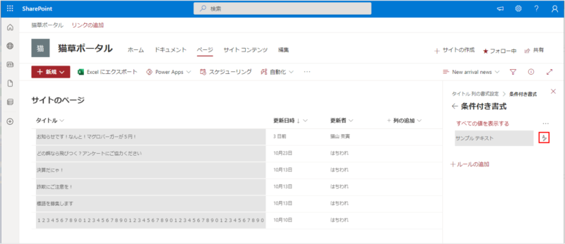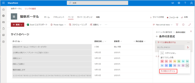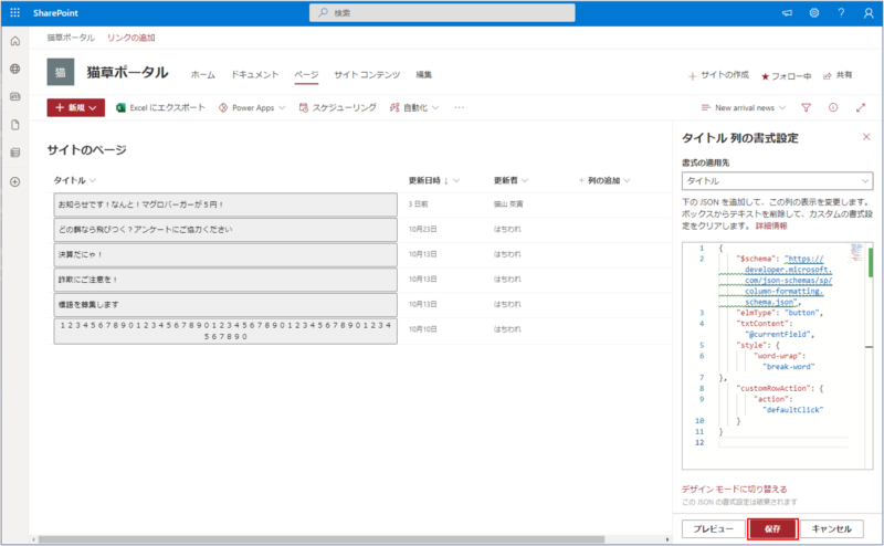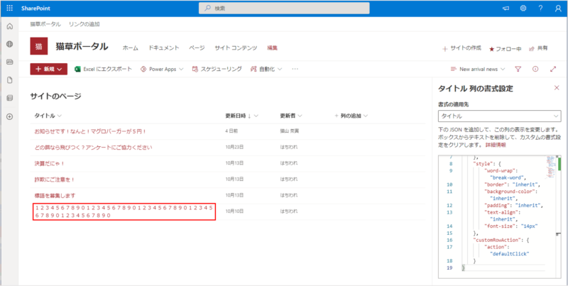 ということで、今回はリストやライブラリで使える「列の書式設定」で、サイトのページライブラリのタイトル列を折り返し表示する方法についてご紹介したいと思います。